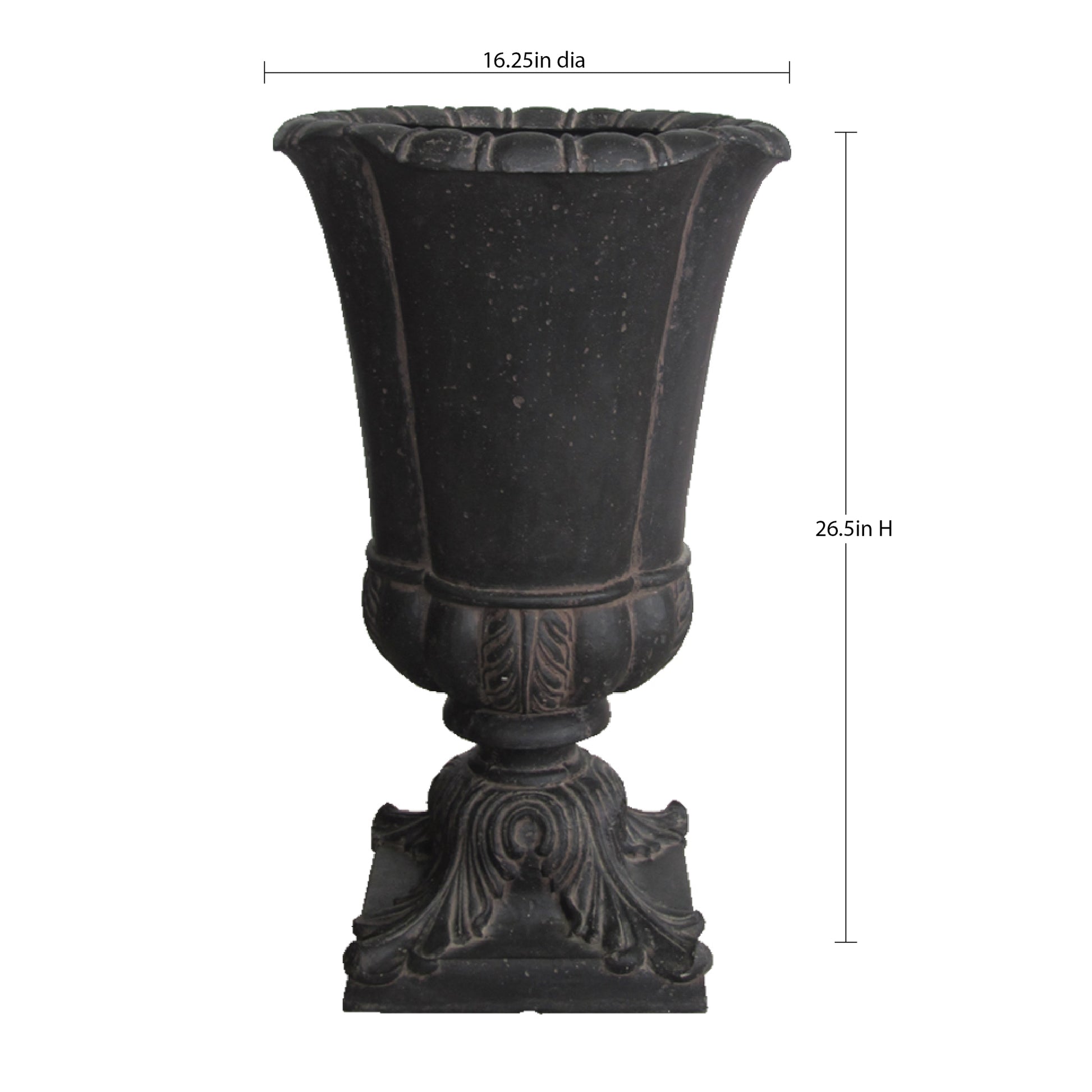 16.25 in. x 26.5 in. Cast Stone Parisian Entrance Urn in Aged Charcoal