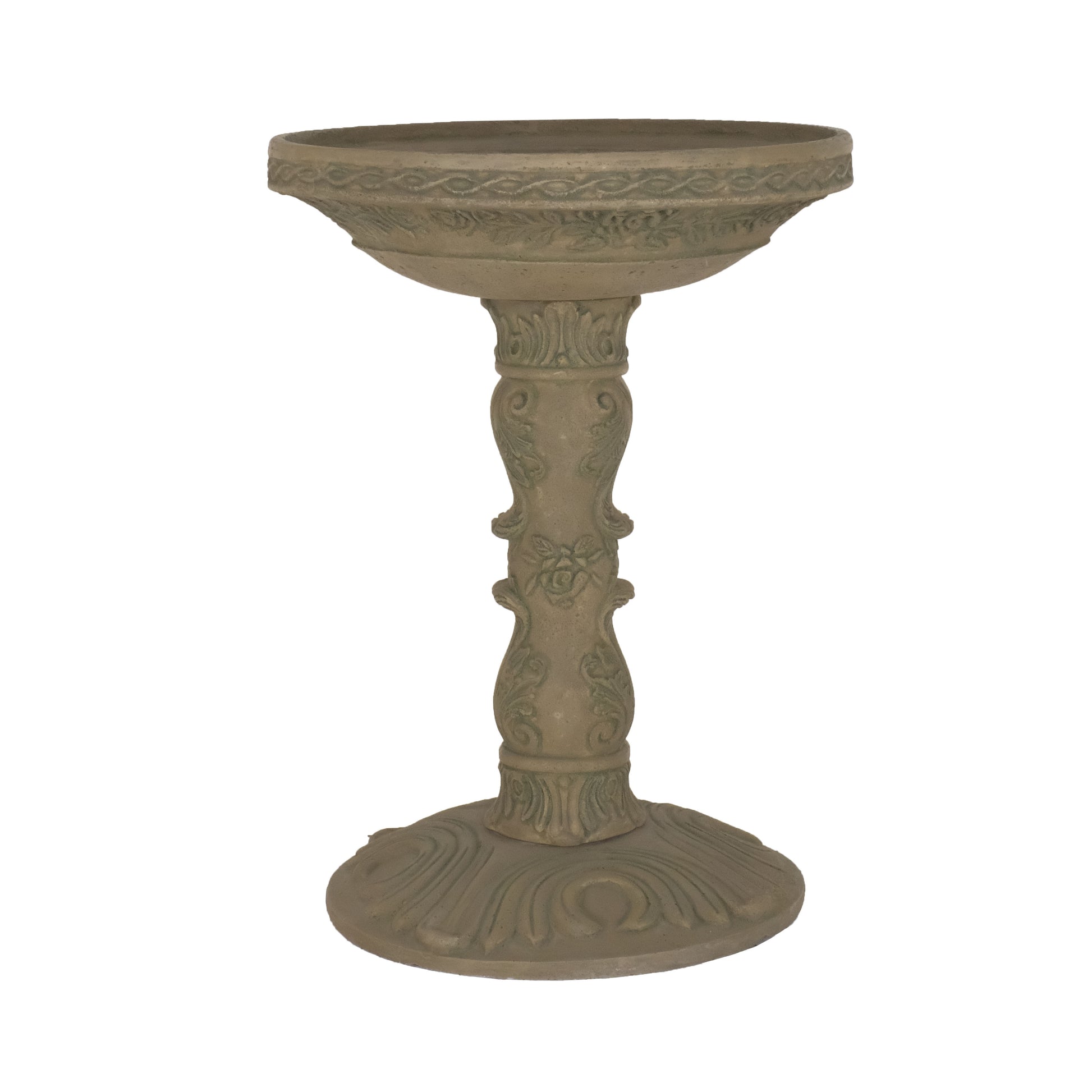 26.5 in. H Cast Stone Fiberglass Rose Aged Charcoal Finish Birdbath