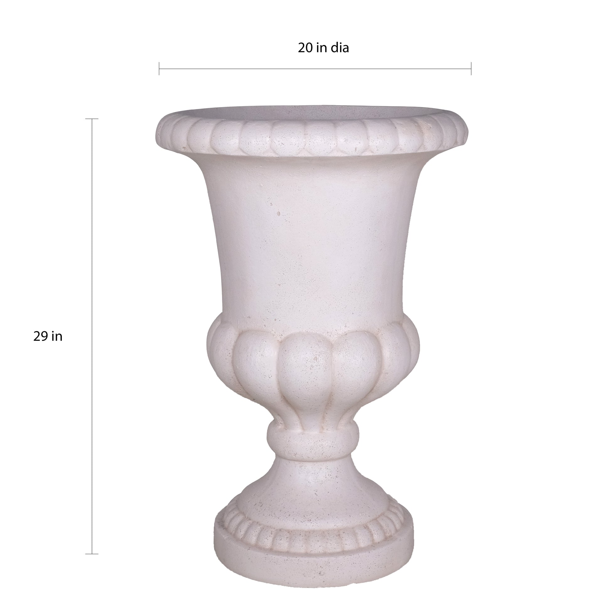 29 in. H Light Aged White Cast Stone Fiberglass Double Bulbous Urn